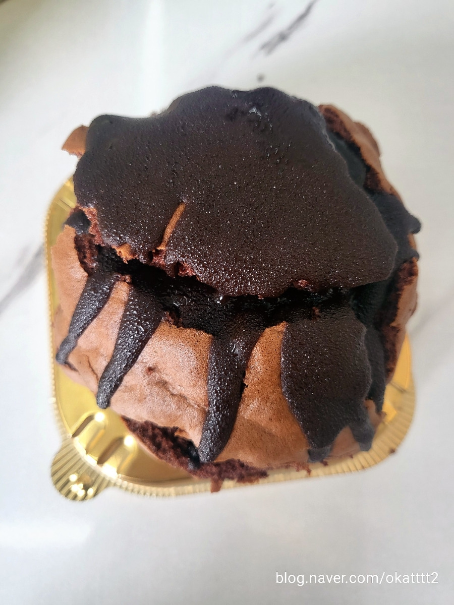 겉면에 진한 초코 코팅과 초코칩이 듬뿍 올라가 있고,